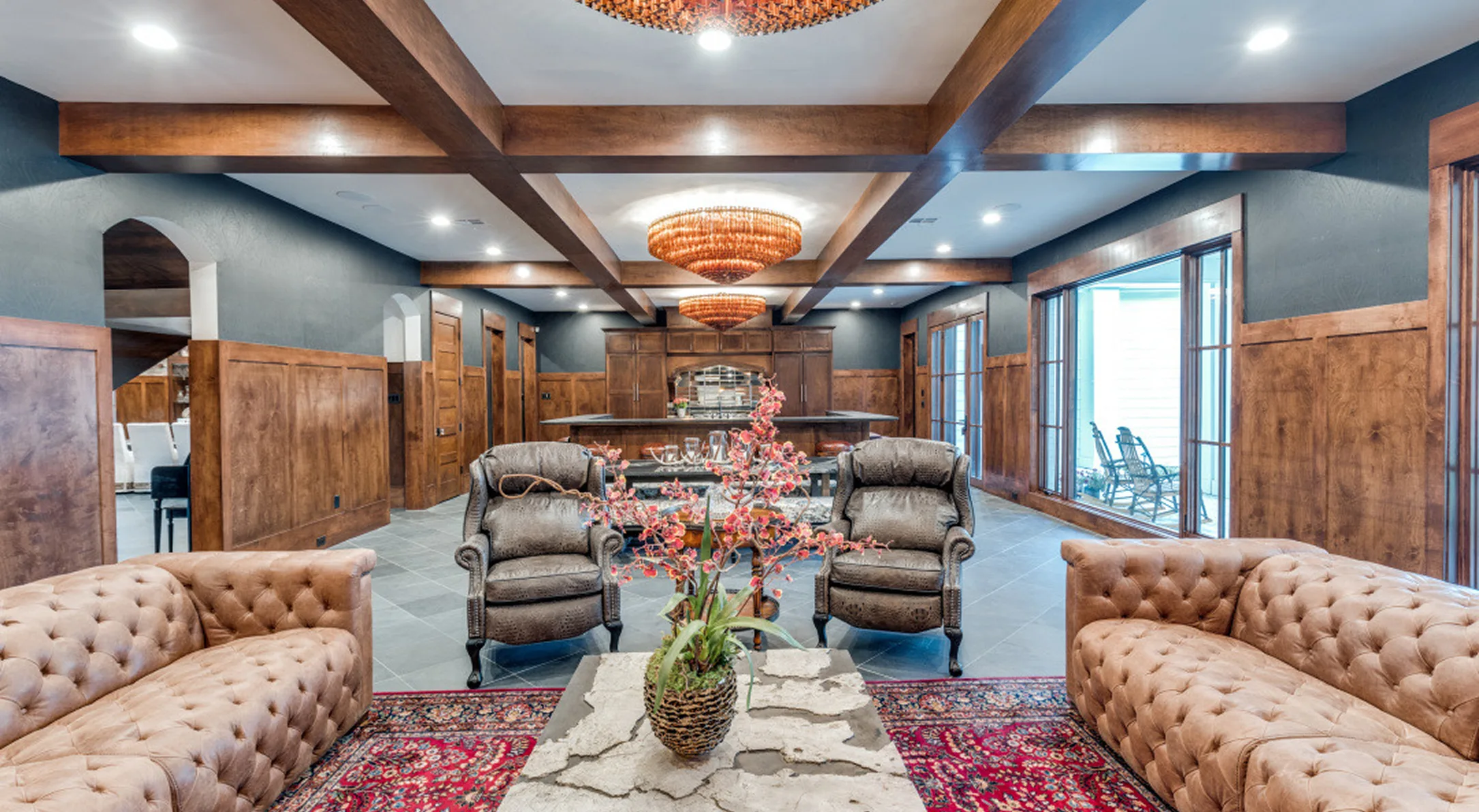 8,000 sq foot two-story residence featuring open-concept living spaces and vaulted ceilings